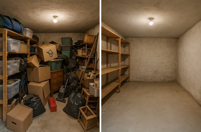 Wir entrümpeln Wohnungen, Häuser, Keller, Dachböden, Garagen, Büros, Lager und auch Messie-Wohnungen.